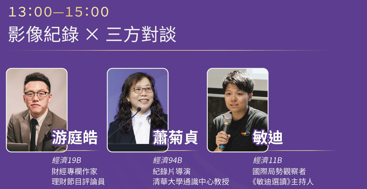 本次論壇以「在世界變動中創造未來」為主題,邀集橫跨世代的清華校友——蕭菊貞(紀錄片導演)、