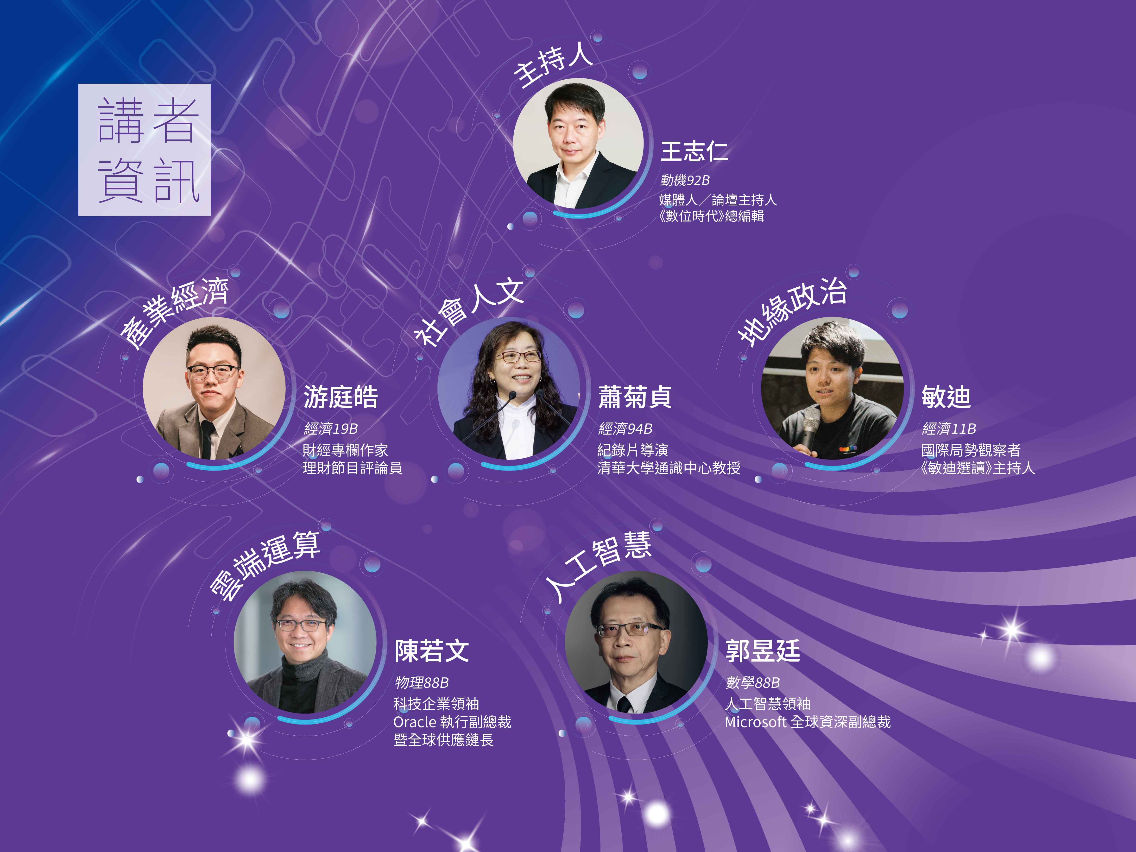 敏迪(國際政經評論者)、游庭皓(產業經濟觀察者)、陳若文(Oracle執行副總裁)、郭昱廷(Microsoft全球資深副總裁),